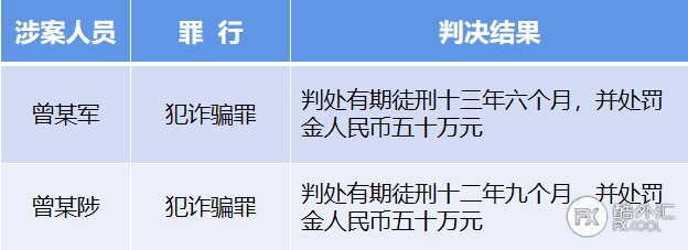 曾某军犯诈骗罪,判处有期徒刑十三年六个月,并处罚金人民币五十万元;曾某陟犯诈骗罪,判处有期徒刑十二年九个月,并处罚金人民币五十万元。